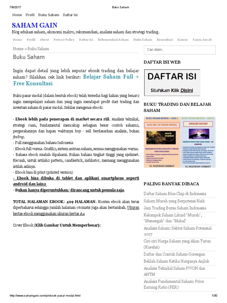 Buku ini akan meyakinkan kamu kalau berinvestasi akan jauh lebih baik untuk kamu di masa depan. Oleh karena itu, di web saham gain ini, anda yang ingin investasi jangka panjang, bisa mendapatkan buku investasi saham pdf, d alam bentuk electronic book (ebook). Mulai dari artikel panduan, buku, ebook pdf, dan semua yang terkait trading online bisa dipelajari di sini.